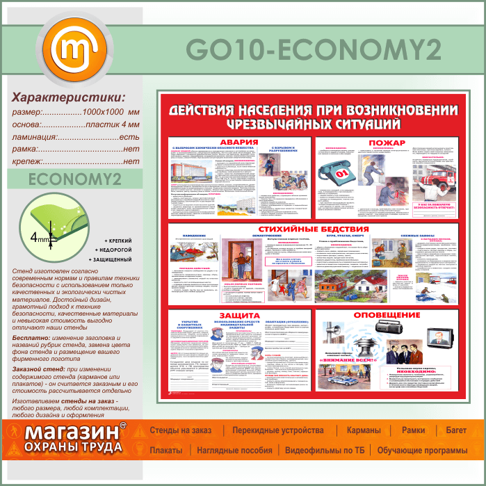 Стенд «Действия населения при возникновении чрезвычайных ситуаций» (GO-10-ECONOMY2) в Бердске купить