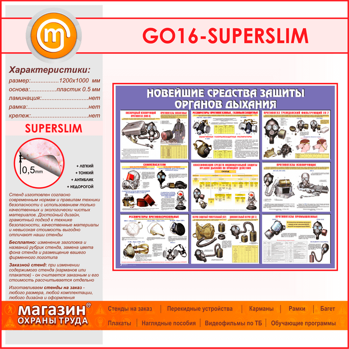Стенд «Новейшие средства защиты органов дыхания» (GO-16-SUPERSLIM) в Бердске купить