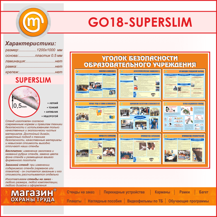 Стенд «Уголок безопасности образовательного учреждения» (GO-18-SUPERSLIM) в Бердске купить