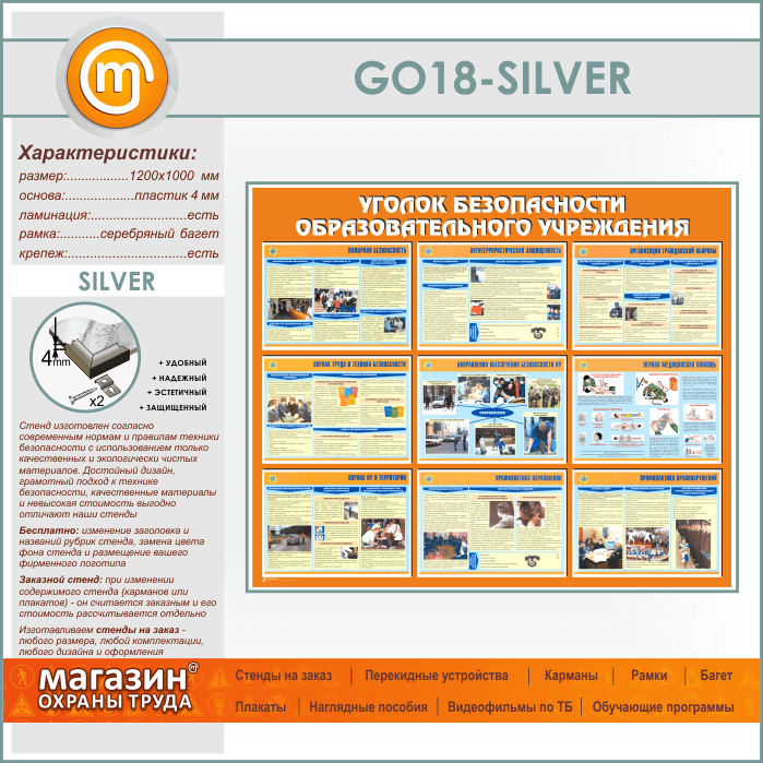 Стенд «Уголок безопасности образовательного учреждения» (GO-18-SILVER) в Бердске купить