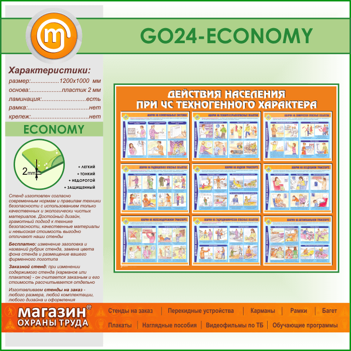 Стенд «Действия населения при ЧС техногенного характера» (GO-24-ECONOMY) в Бердске купить