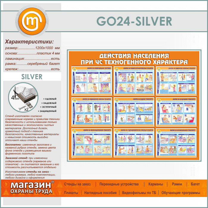 Стенд «Действия населения при ЧС техногенного характера» (GO-24-SILVER) в Бердске купить