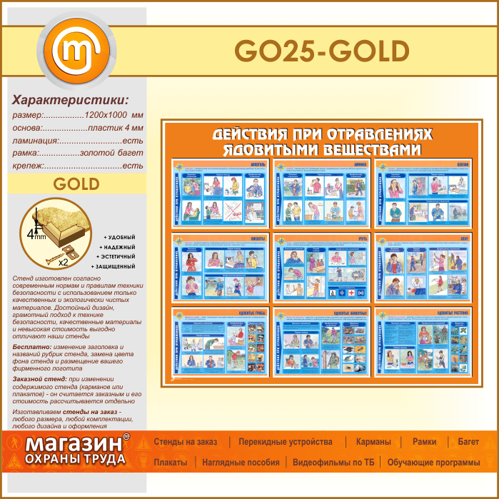 Стенд «Действия при отравлении ядовитыми веществами» (GO-25-GOLD) в Бердске купить
