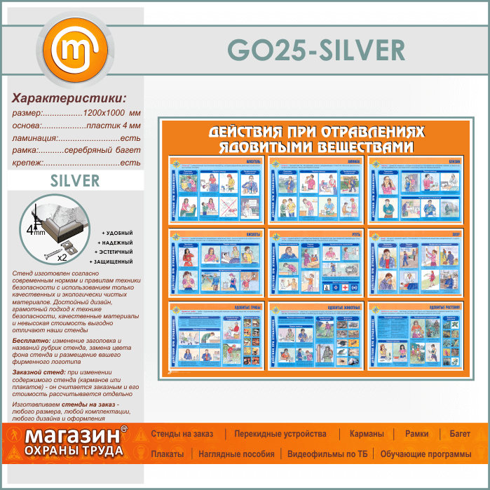 Стенд «Действия при отравлении ядовитыми веществами» (GO-25-SILVER) в Бердске купить