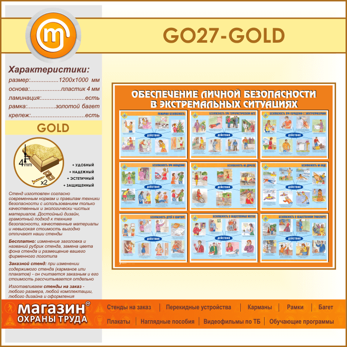Стенд «Обеспечение личной безопасности в экстремальных ситуациях» (GO-27-GOLD) в Бердске купить