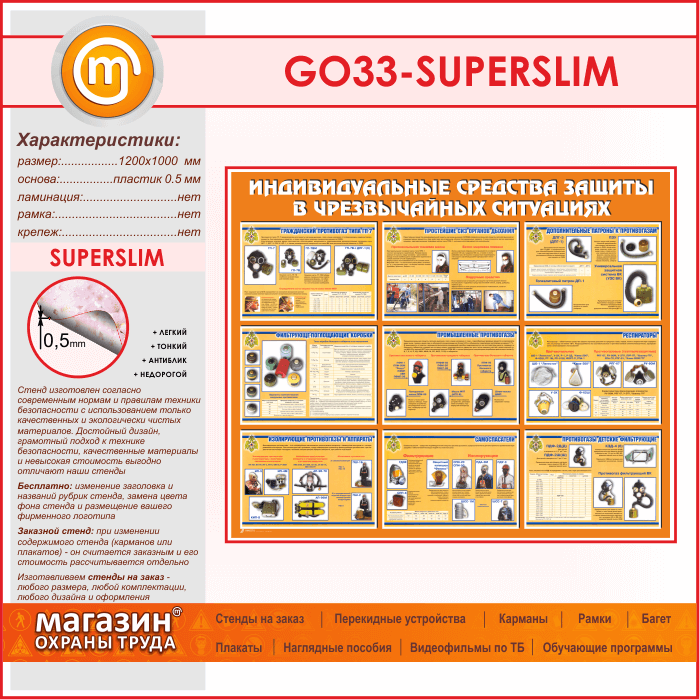 Стенд «Индивидуальные средства защиты в чрезвычайных ситуациях» (GO-33-SUPERSLIM) в Бердске купить