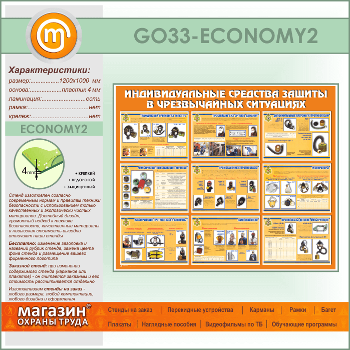 Стенд «Индивидуальные средства защиты в чрезвычайных ситуациях» (GO-33-ECONOMY2) в Бердске купить