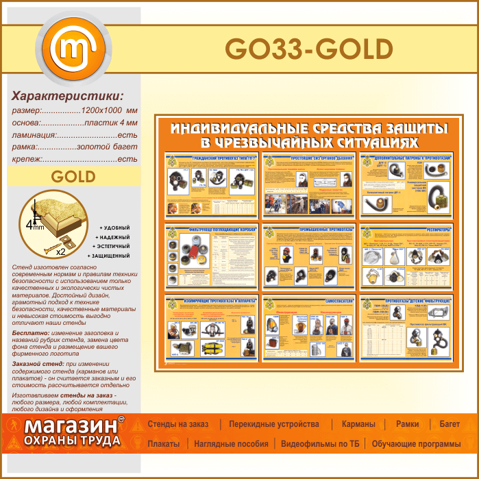 Стенд «Индивидуальные средства защиты в чрезвычайных ситуациях» (GO-33-GOLD) в Бердске купить