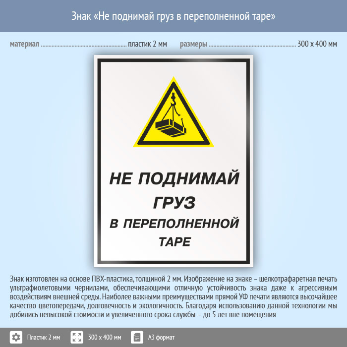 Знак «Не поднимай груз в переполненной таре», КЗ-26 (пластик, 300х400 мм) в Бердске купить