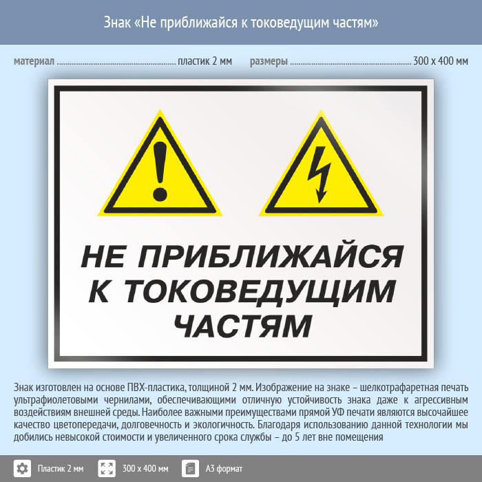 Знак «Не приближайся к токоведущим частям», КЗ-29 (пластик, 400х300 мм) в Бердске купить
