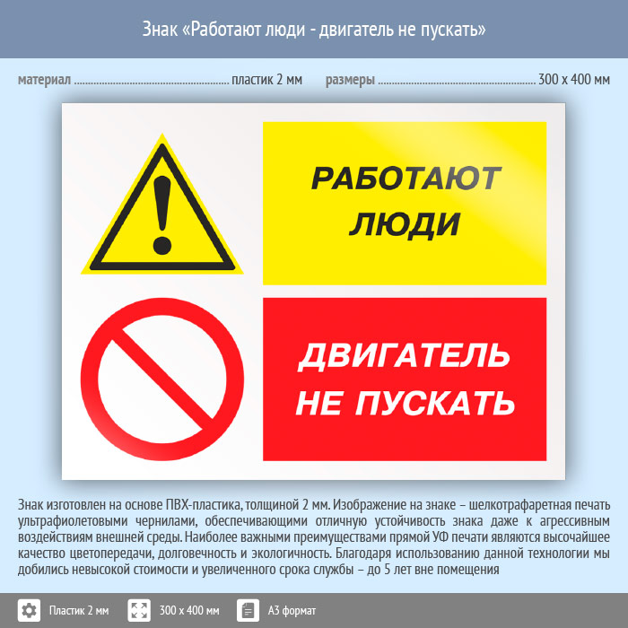 Знак «Работают люди - двигатель не пускать», КЗ-82 (пластик, 400х300 мм) в Бердске купить