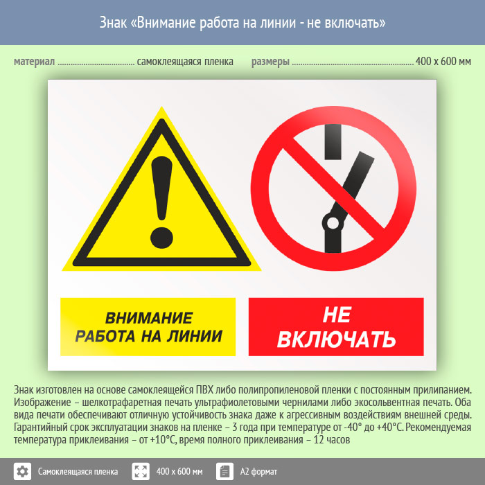 Знак «Внимание работа на линии - не включать», КЗ-16 (пленка, 600х400 мм) в Бердске купить