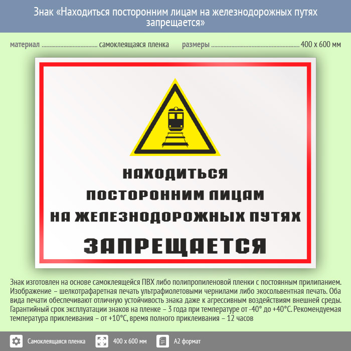 Знак «Находиться посторонним лицам на железнодорожных путях запрещается», КЗ-24 (пленка, 600х400 мм) в Бердске купить
