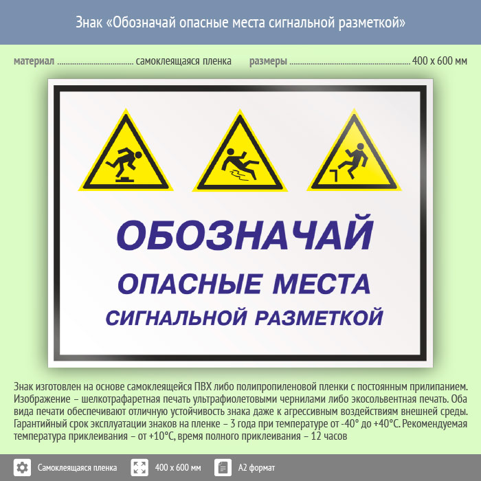 Знак «Обозначай опасные места сигнальной разметкой», КЗ-30 (пленка, 600х400 мм) в Бердске купить