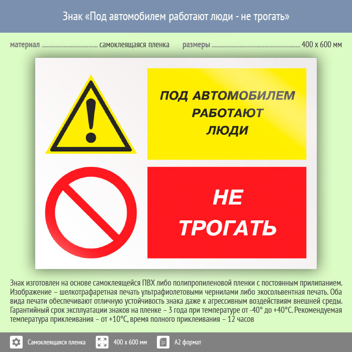 Знак «Под автомобилем работают люди - не трогать», КЗ-66 (пленка, 600х400 мм) в Бердске купить