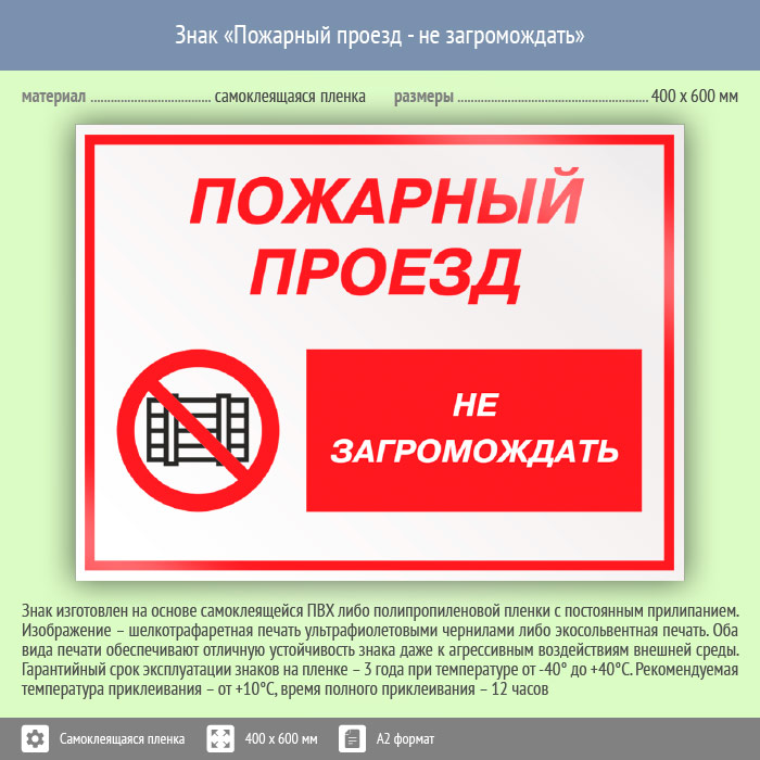 Знак «Пожарный проезд - не загромождать», КЗ-67 (пленка, 600х400 мм) в Бердске купить