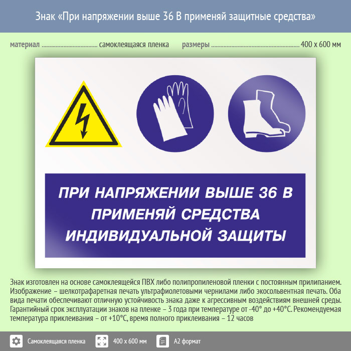 Знак «При напряжении выше 36 В применяй защитные средства», КЗ-71 (пленка, 600х400 мм) в Бердске купить