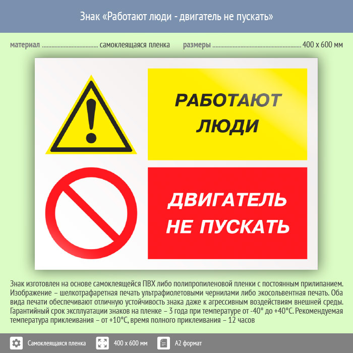 Знак «Работают люди - двигатель не пускать», КЗ-82 (пленка, 600х400 мм) в Бердске купить