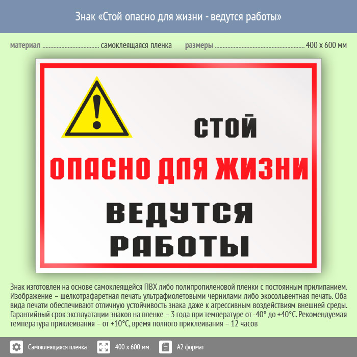 Знак «Стой опасно для жизни - ведутся работы», КЗ-86 (пленка, 600х400 мм) в Бердске купить