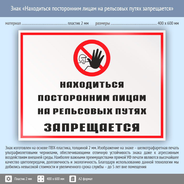 Знак «Находиться посторонним лицам на рельсовых путях запрещается», КЗ-25 (пластик, 600х400 мм) в Бердске купить