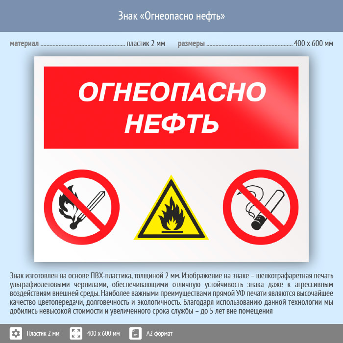 Знак «Огнеопасно нефть», КЗ-31 (пластик, 600х400 мм) в Бердске купить
