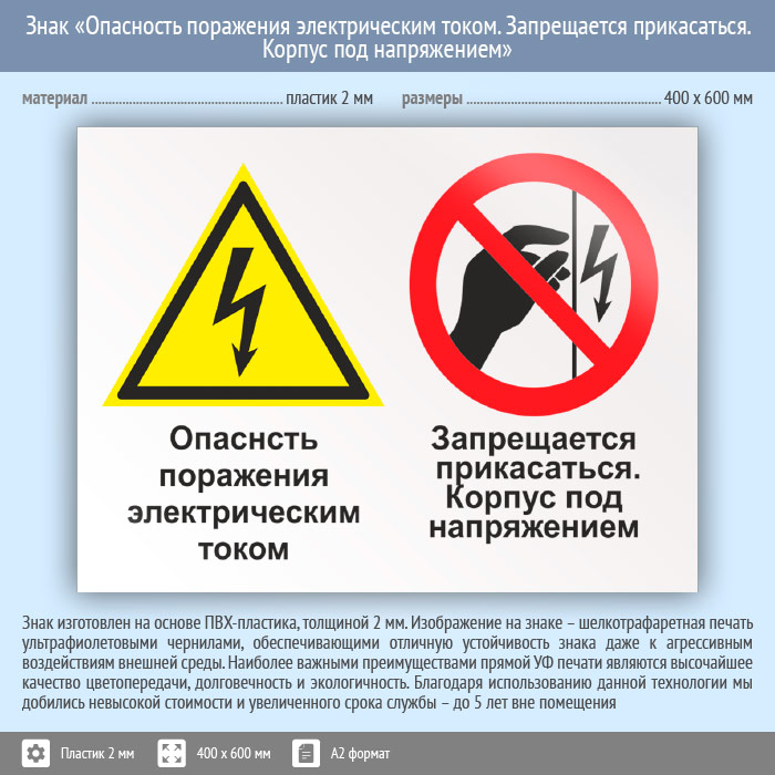 Знак «Опасность поражения электрическим током. Запрещается прикасаться. Корпус под напряжением», КЗ-47 (пластик, 600х400 мм) в Бердске купить