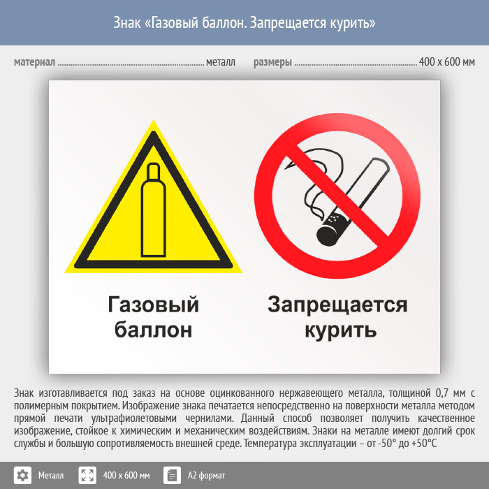 Знак «Газовый баллон. Запрещается курить», КЗ-18 (металл, 600х400 мм) в Бердске купить