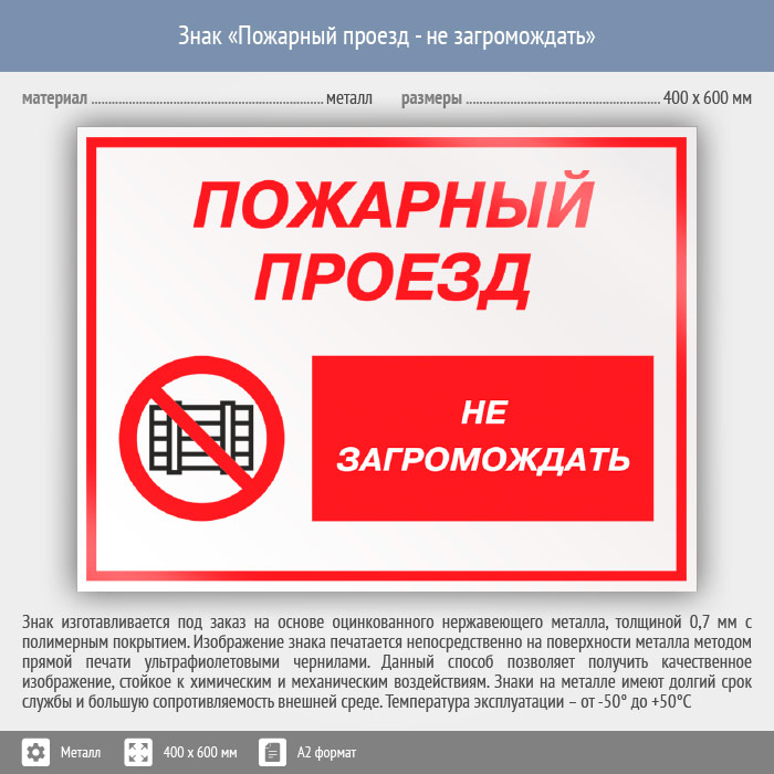 Знак «Пожарный проезд - не загромождать», КЗ-67 (металл, 600х400 мм) в Бердске купить