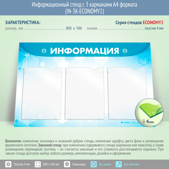 Информационный стенд с 3 карманами А4 формата (IN-3K-ECONOMY2) в Бердске купить