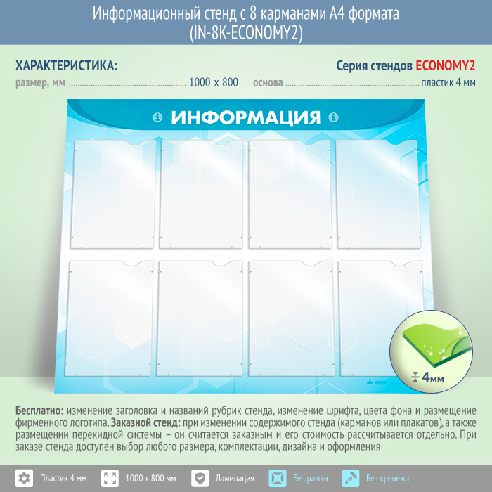 Информационный стенд с 8 карманами А4 формата (IN-8K-ECONOMY2) в Бердске купить