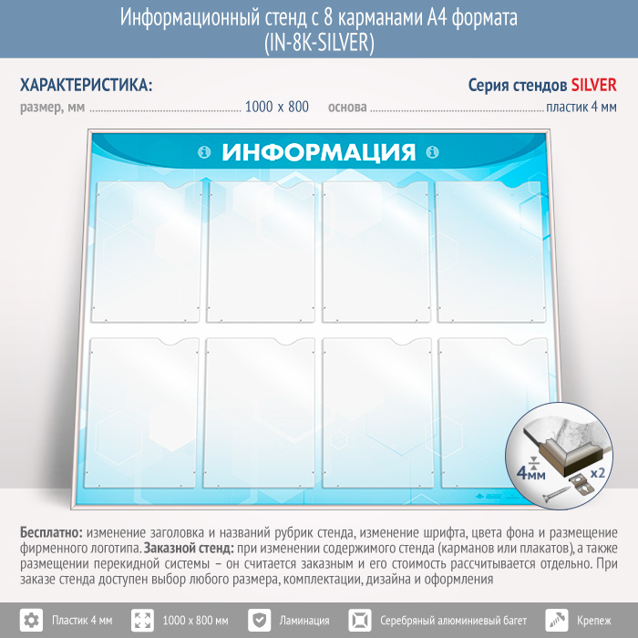 Информационный стенд с 8 карманами А4 формата (IN-8K-SILVER) в Бердске купить
