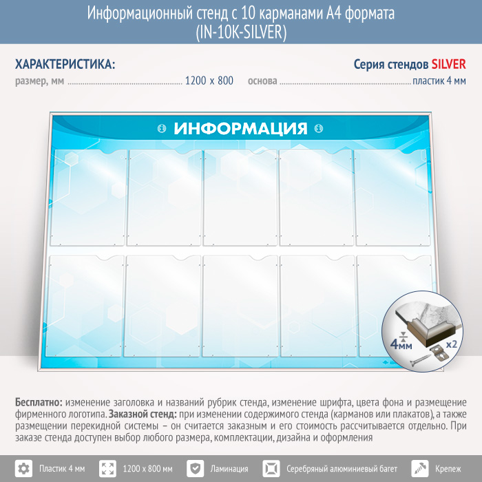 Информационный стенд с 10 карманами А4 формата (IN-10K-SILVER) в Бердске купить