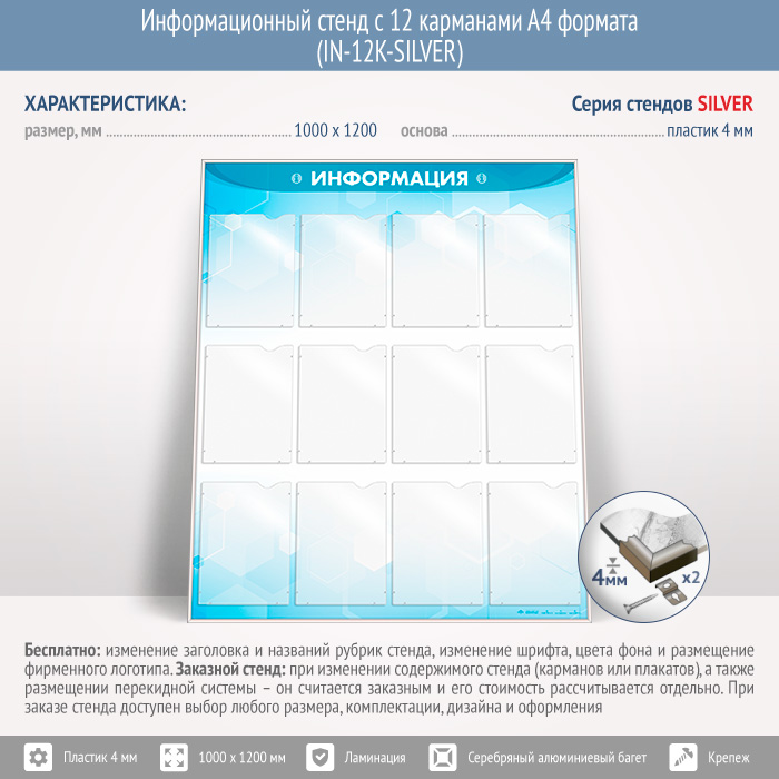 Информационный стенд с 12 карманами А4 формата (IN-12K-SILVER) в Бердске купить