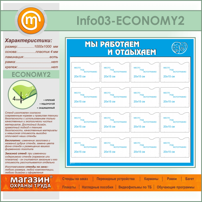 Стенд «Мы работаем и отдыхаем» с 16 карманами А5 формата (IN-03-ECONOMY2) в Бердске купить