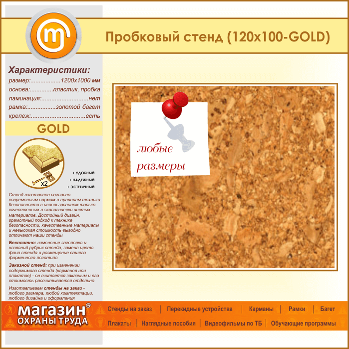 Пробковая доска, 120х100 см (IN-05-GOLD) в Бердске купить