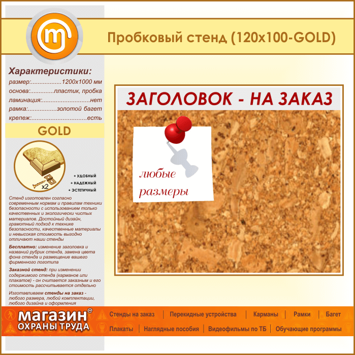 Пробковая доска с заголовком, 120х100 см (IN-06-GOLD) в Бердске купить