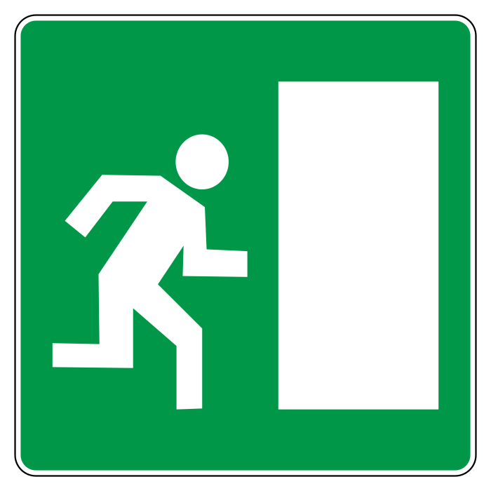 Дорожный знак 6.20.2 «Аварийный выход» (металл 0,8 мм, II типоразмер: сторона 700 мм, С/О пленка: тип А инженерная) в Бердске купить