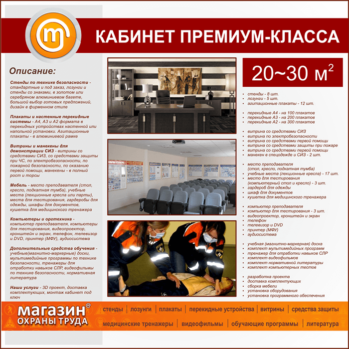 Предлагаем на выбор три класса кабинетов по охране труда на 20-30 кв.м. - эконом, бизнес и премиум