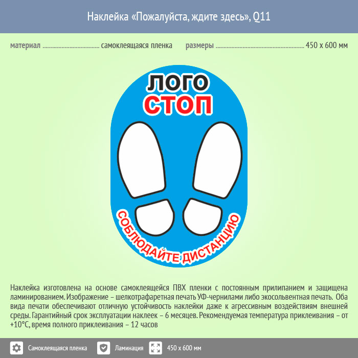 Наклейка на пол «Пожалуйста, ждите здесь», Q11 (пленка c ламинированием, 450х600 мм) в Бердске купить