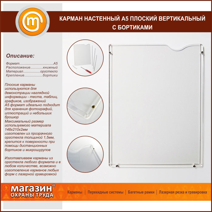 Карман настенный А5 плоский вертикальный с бортиками в Бердске купить
