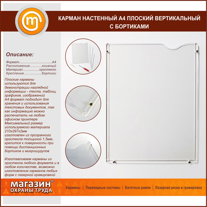 Карман настенный А4 плоский вертикальный с бортиками в Бердске купить