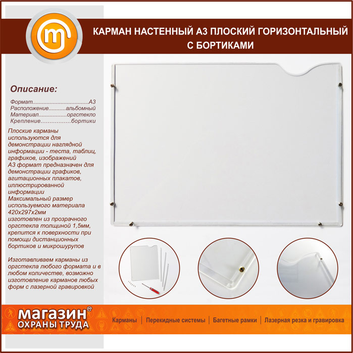 Карман настенный А3 плоский горизонтальный с бортиками в Бердске купить