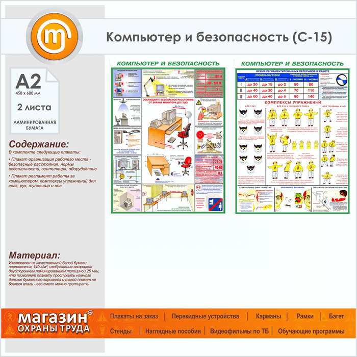 Плакаты «Компьютер и безопасность» (С-15, ламинированная бумага, А2, 2 листа) в Бердске купить