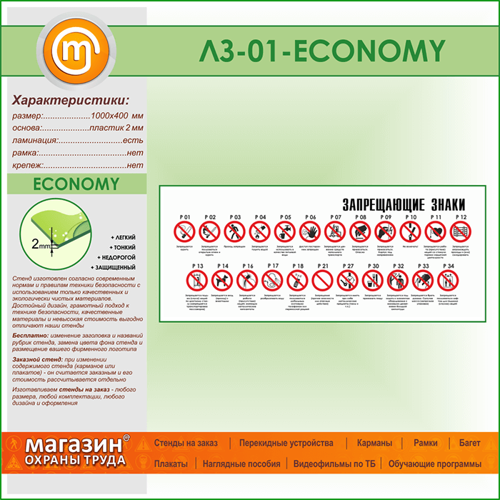 Стенд «Запрещающие знаки» (LZ-01-ECONOMY) в Бердске купить