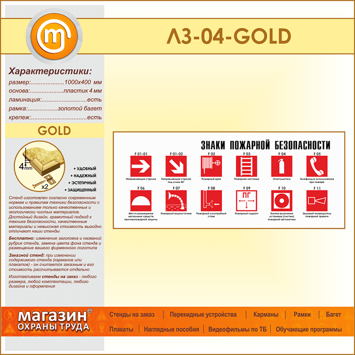 Стенд «Знаки пожарной безопасности» (LZ-04-GOLD) в Бердске купить