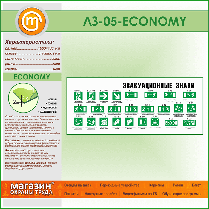 Стенд «Эвакуационные знаки» (LZ-05-ECONOMY) в Бердске купить