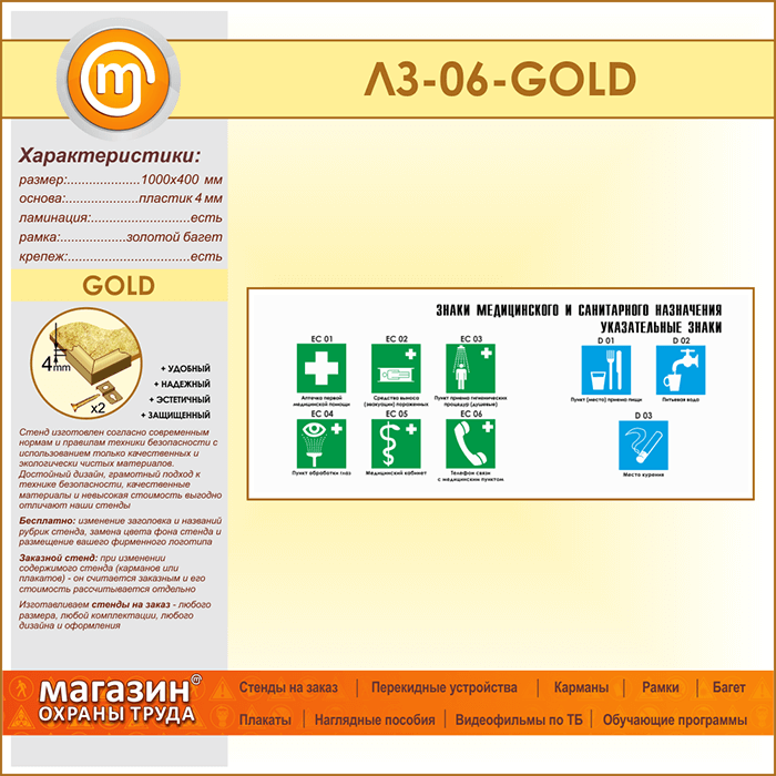 Стенд «Знаки медицинского и санитарного назначения. Указательные знаки» (LZ-06-GOLD) в Бердске купить