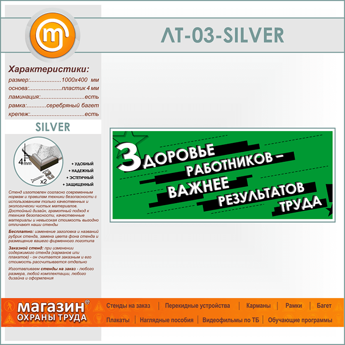 Лозунг «Здоровье работников - важнее результатов труда» (LT-03-SILVER) в Бердске купить
