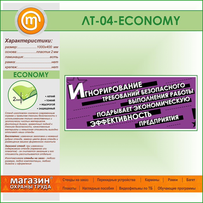Лозунг «Игнорирование безопасного выполнения работы...» (LT-04-ECONOMY) в Бердске купить