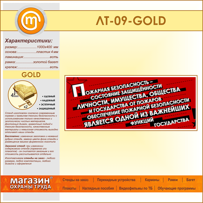 Лозунг «Пожарная безопасность - состояние защищенности...» (LT-09-GOLD) в Бердске купить